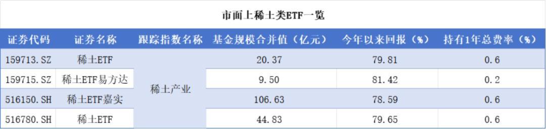 若對交易費用敏感,希望長期持有,可關注稀土ETF易方達(159715.SZ),該ETF持有1年總費率爲0.2%,同類ETF產品中費率最低。