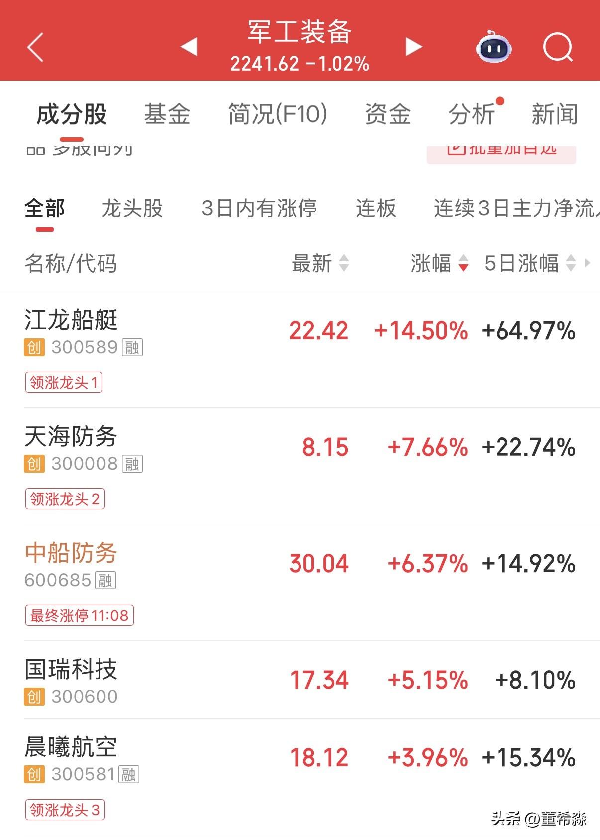 軍工板塊同樣表現活躍,龍溪股份漲停,久之洋漲超10%,江龍船艇、天海防務逆勢大漲。軍工股的強勢表現,一方面得益於其逆週期特性,另一方面也與當前複雜多變的國際環境有關。