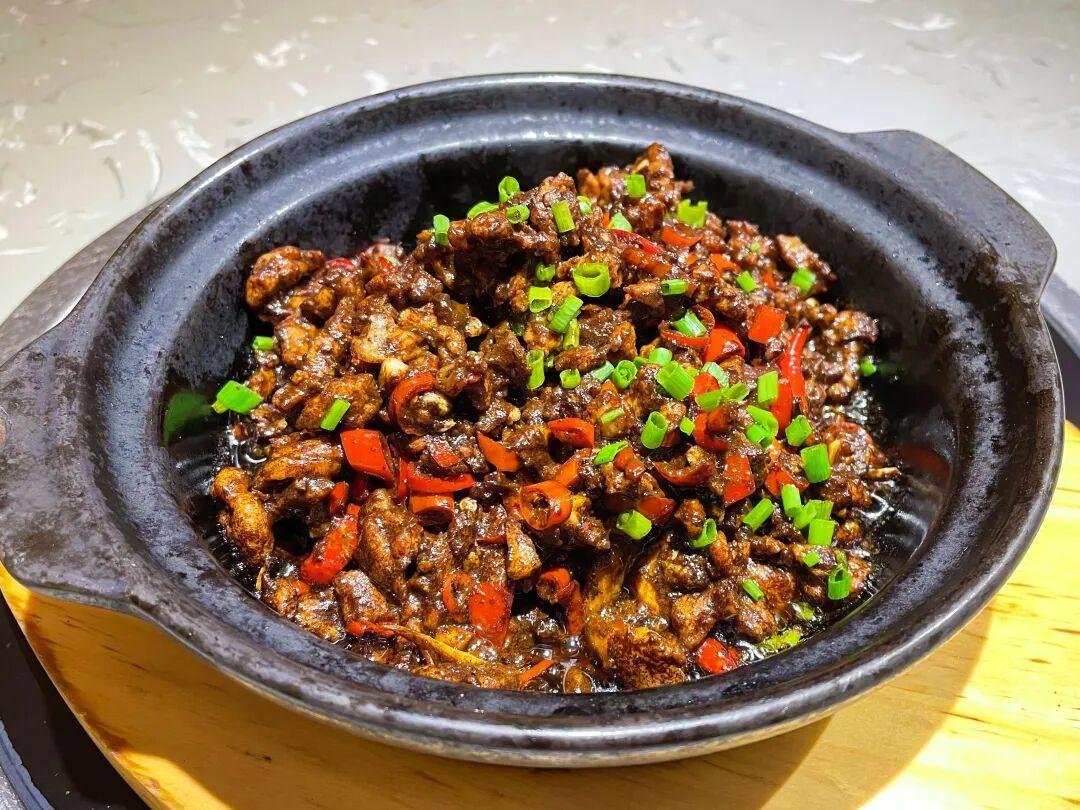 整道菜色澤醬紅油亮,第一口,辛辣直衝天靈蓋,不是特別能喫辣的人幾乎直接飆淚。但熬過最初的辣度,隨之而來的是鴨肉的鮮嫩和一種複合的鮮香味,讓人慾罷不能。一盤永州血鴨,沒有fine dining的精緻,卻與永州人直率、熱烈的個性一脈相承。