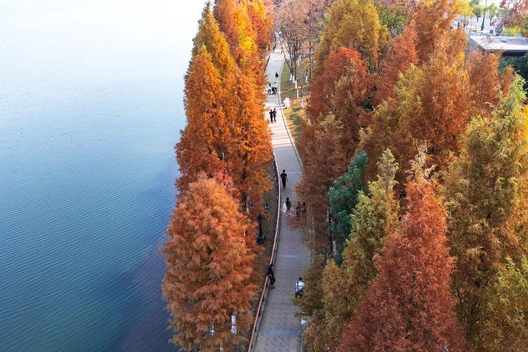 △湘江河畔杉林披紅。(圖/視覺中國)
