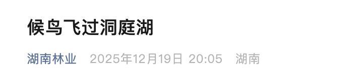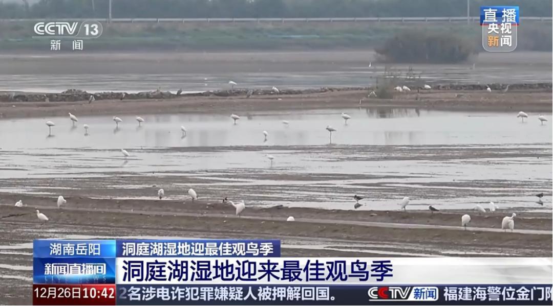 2025年12月19日,新華每日電訊的報道《候鳥飛過洞庭湖》介紹,作爲“東亞-澳大利西亞”候鳥遷徙線路上的重要停歇地、越冬地,洞庭湖溼地廣袤,水草豐茂,魚類繁多,是越冬候鳥的理想家園。每年秋冬,360多種候鳥如約而至,其中不乏東方白鸛、黑鸛、白鶴、中華秋沙鴨等珍稀瀕危物種。
