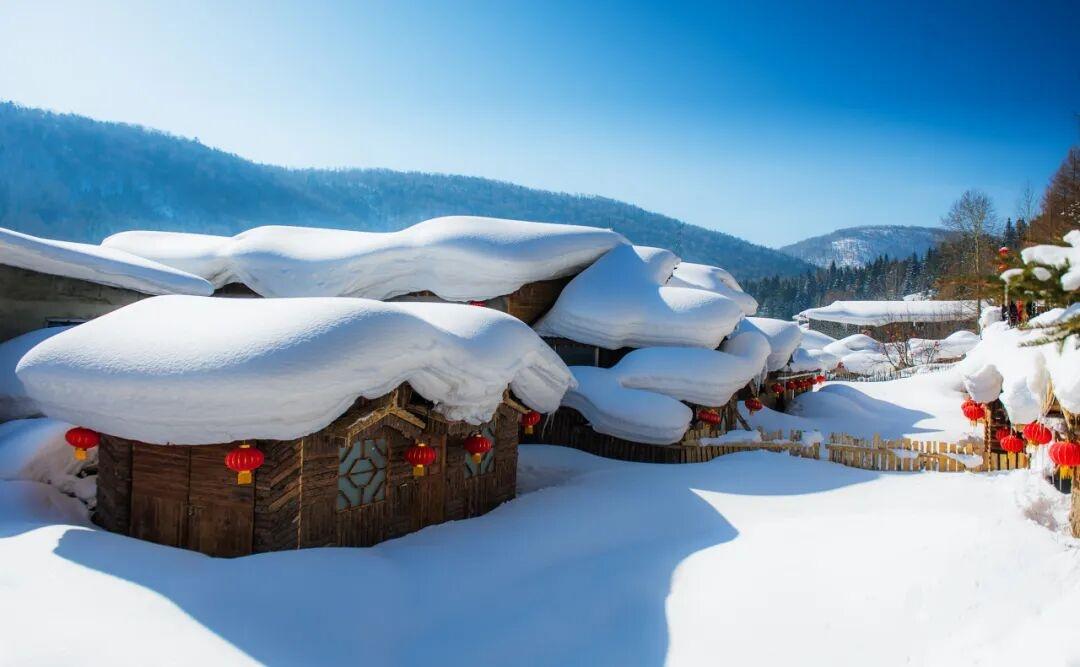 而在雪鄉景區,你會看到另一種靜謐的美。溫馨的院落被厚軟的積雪溫柔覆蓋,厚墩墩的雪蘑菇,依然圓滾滾地蹲在屋檐上,一層疊一層,蓬鬆得像剛打發好的奶油。