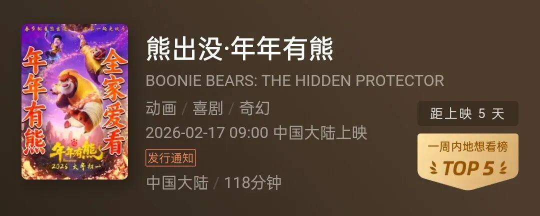 而《熊出沒·年年有熊》《熊貓計劃之部落奇遇記》聚焦親子家庭觀衆,《星河入夢》類型受年輕觀衆喜愛,主打檔期差異化,也都可能成爲口碑黑馬。