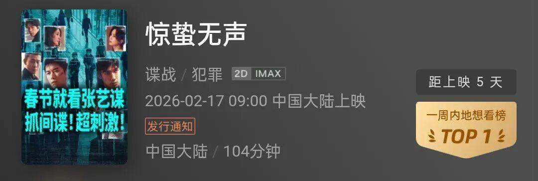 縱觀今年春節檔的整體情況,在上映影片數量方面,公開資料顯示,2026年春節檔目前定檔8部影片。大年初一上映6部,分別爲《飛馳人生3》《驚蟄無聲》《鏢人:風起大漠》《星河入夢》《熊貓計劃之部落奇遇記》《熊出沒·年年有熊》。此外,大年初三《重返·狼羣》重映,大年初四《夜王》在兩廣地區上映。數量基本持平往年。