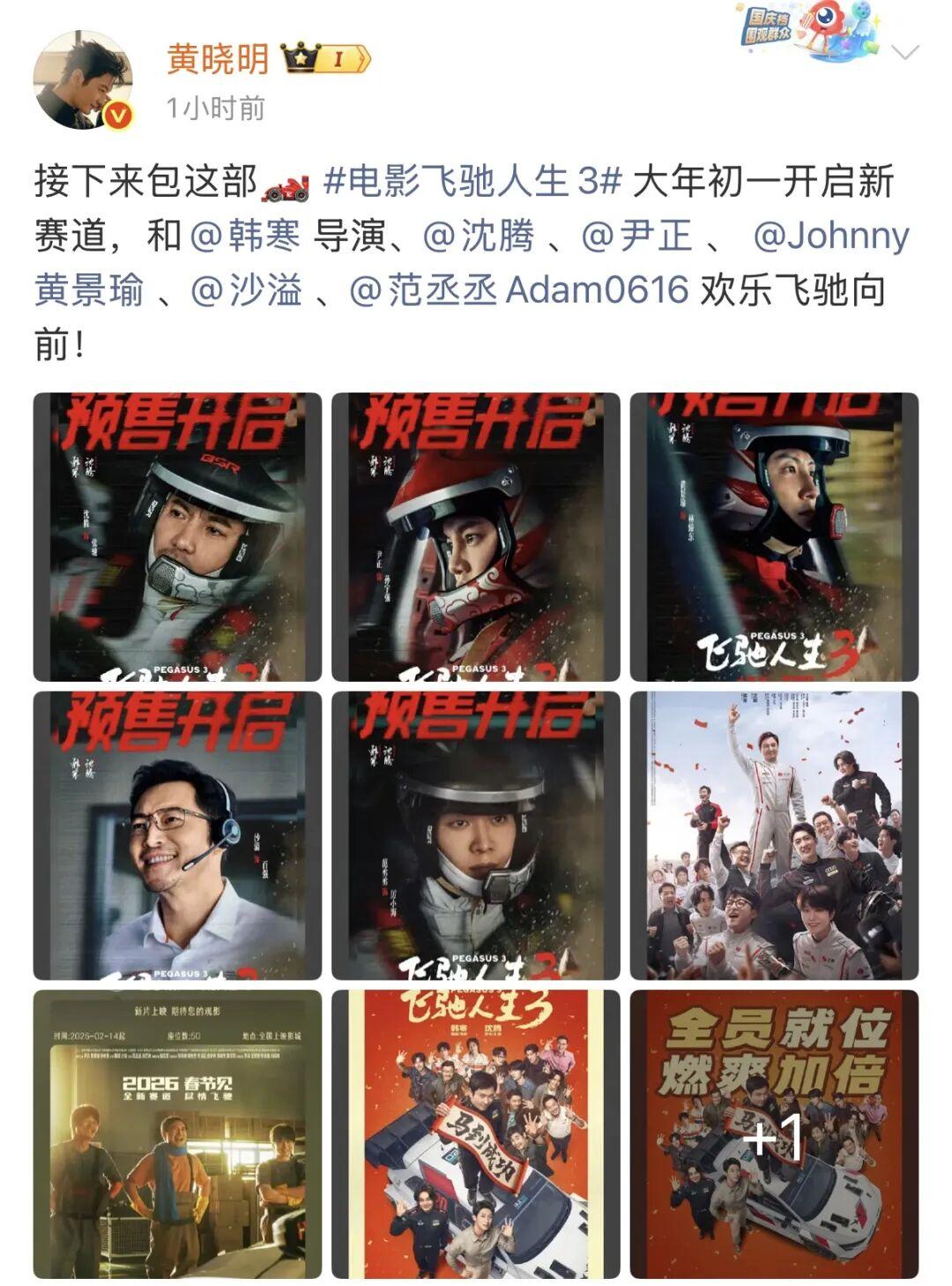 2026春節檔即將開啓,著名演員黃曉明剛剛在微博連發5條微博,爲網友送上50場春節檔觀影票。