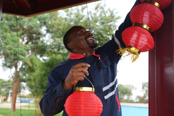 恩戈伊:聽說紅燈籠是中國年的標配,這紅彤彤的顏色一亮起來,整個廠區都添了精氣神,看着心裏就暖和!