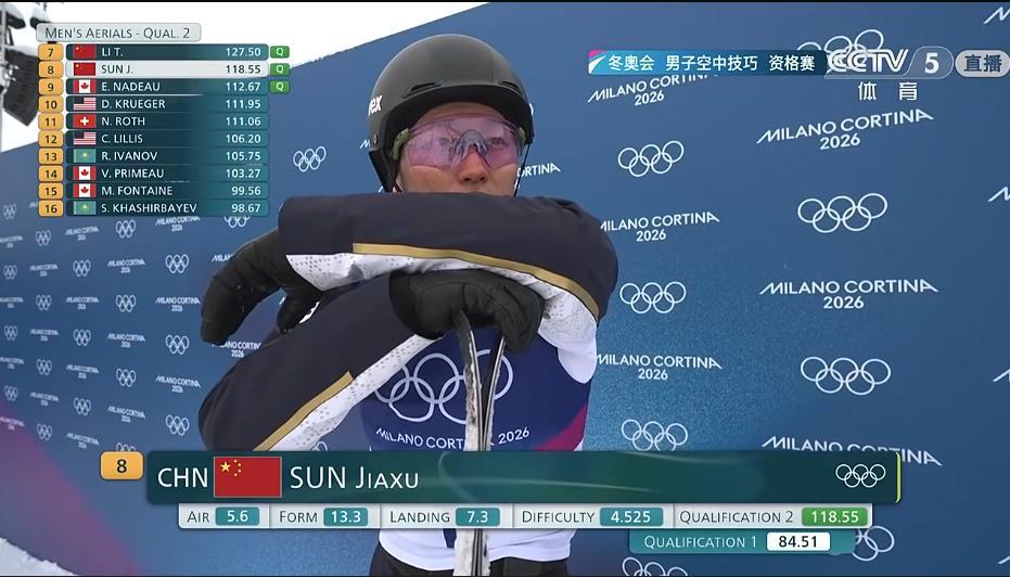 米蘭-科爾蒂納冬奧會,自由式滑雪男子空中技巧預賽,中國選手孫佳旭晉級決賽!