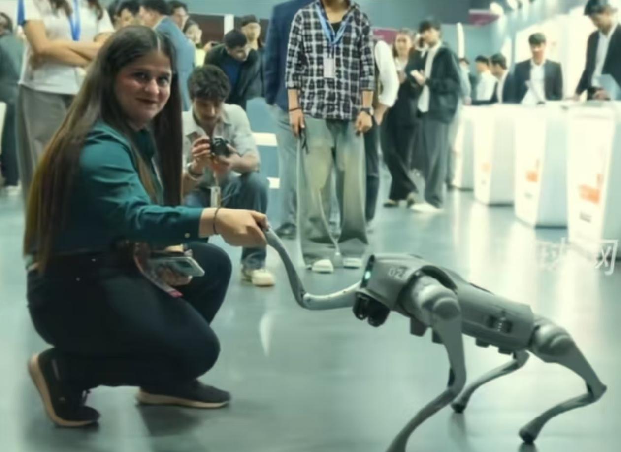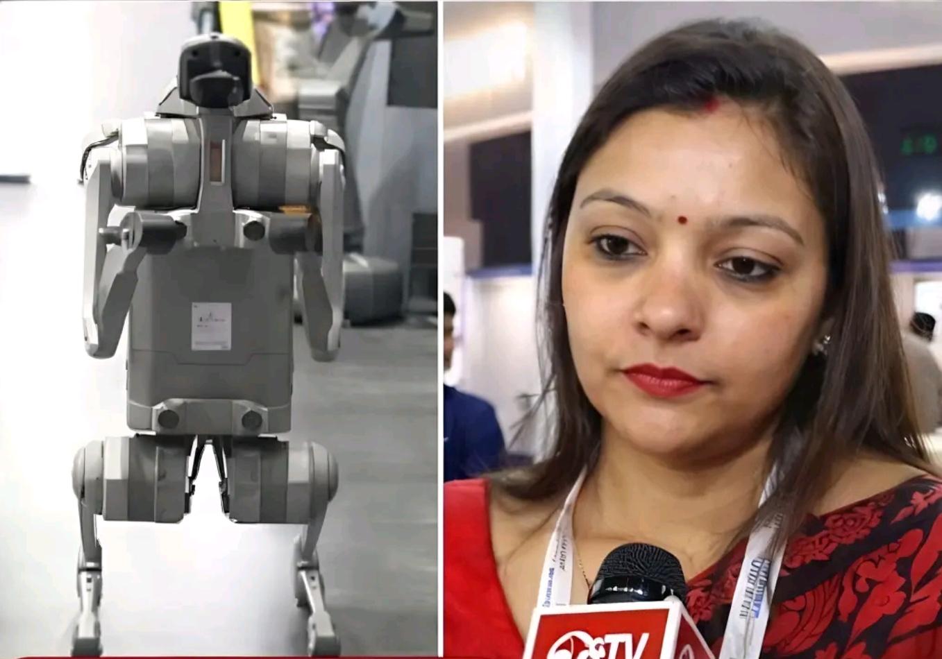 比如,一位正在接受採訪的印度知名大學教師,她的團隊帶來了一款號稱達到“國際先進水平”的機器狗。面對鏡頭,她侃侃而談,稱這些機器狗是學校自研的,學生們利用工程學、軟件和 AI 技術爲“數字印度”建設做出了傑出貢獻。