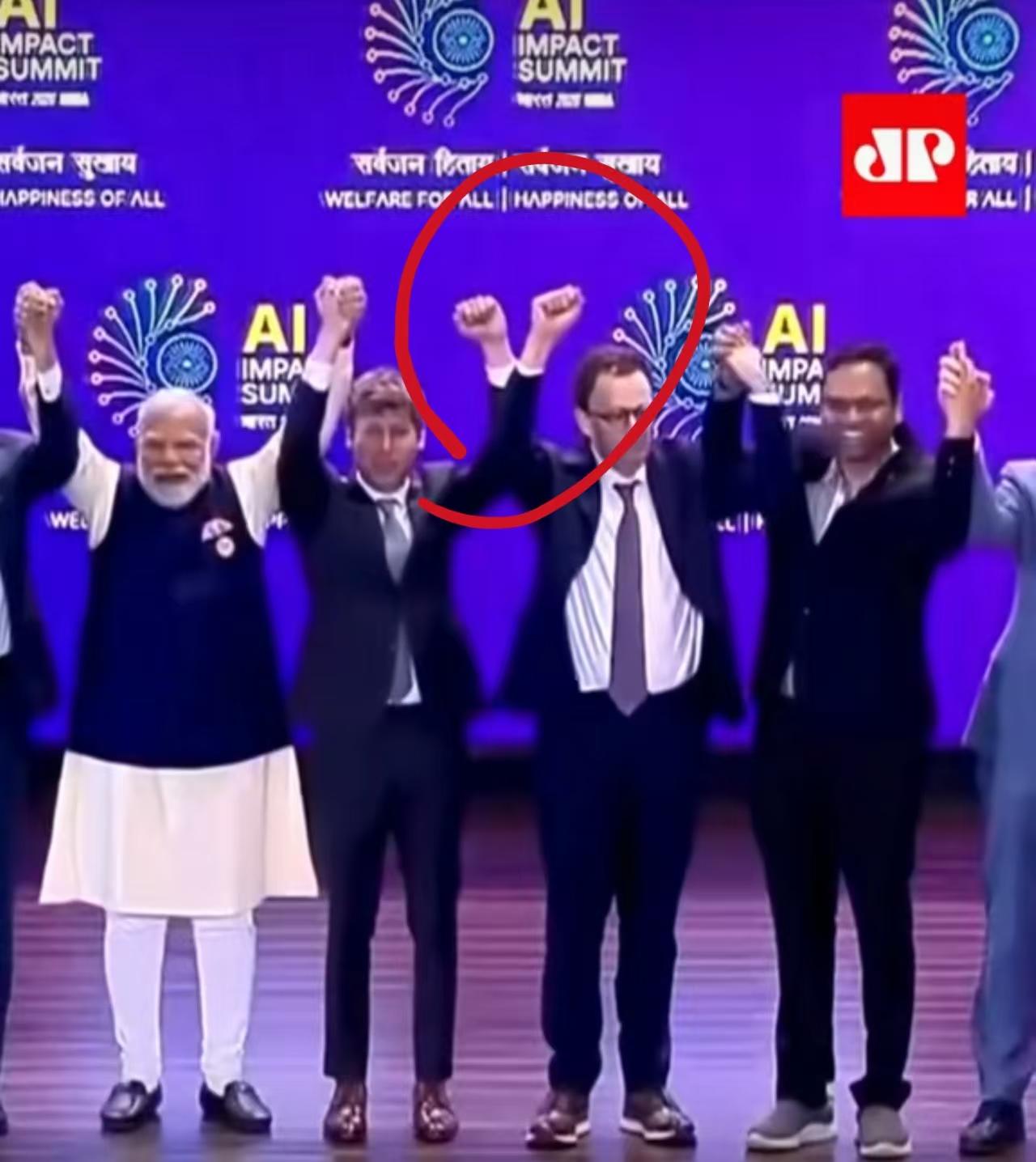 你在上圖看到的是前兩天在新德里召開的“2026年印度AI影響力峯會”上合影的一幕。