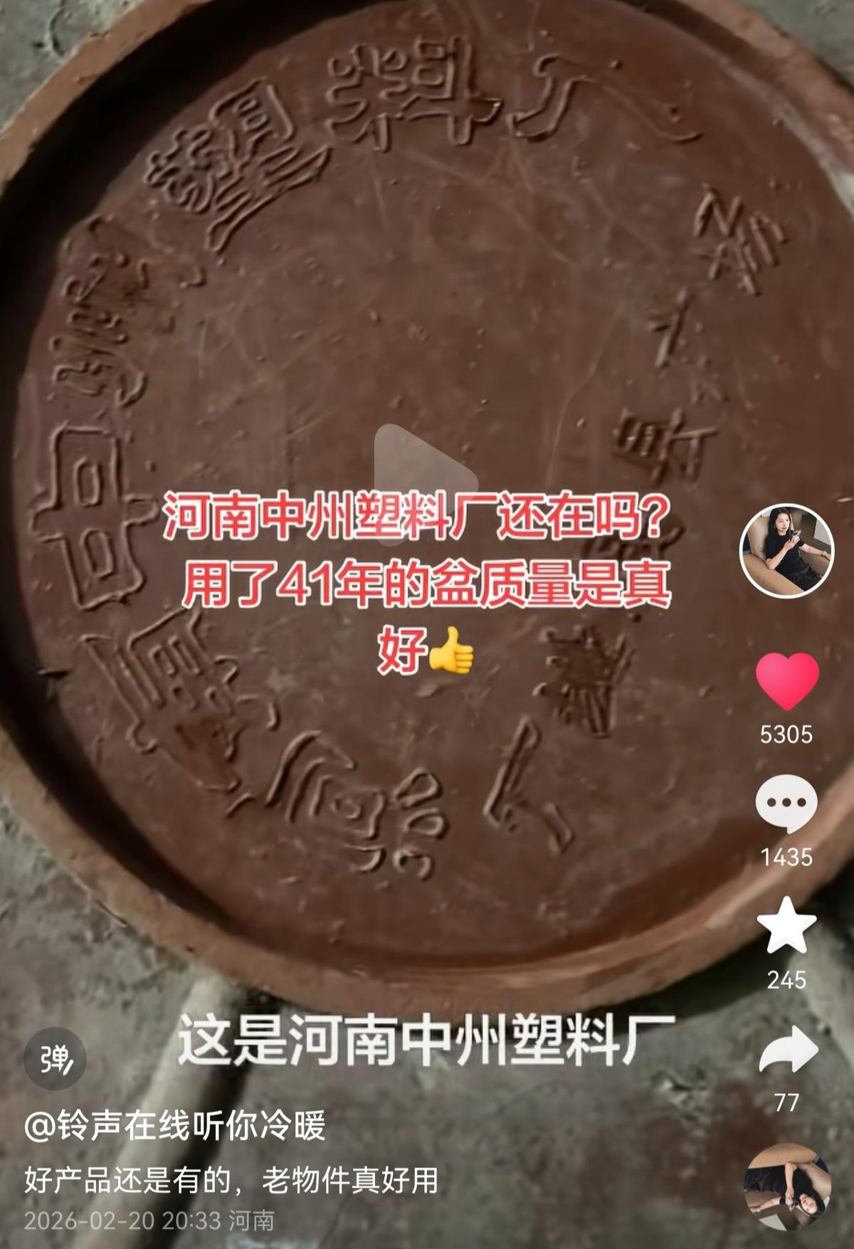 2月20日晚,網友@鈴聲在線聽你冷暖 發視頻稱,她家有個塑料盆是1984年買的,質量真的好,用到現在了都沒爛,也不知道廠家還在不在,想再買幾個。