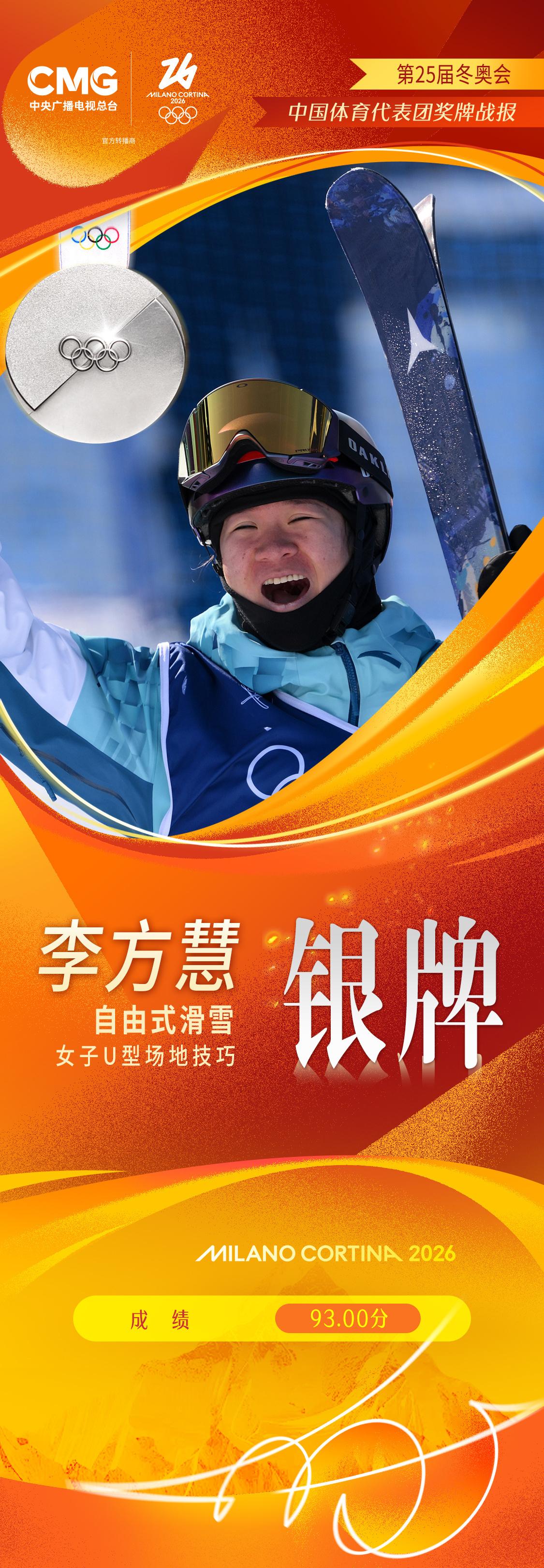 米蘭-科爾蒂納冬奧會,自由式滑雪女子U型場地技巧決賽,中國選手谷愛凌奪得金牌,李方慧獲得銀牌。中國隊包攬金銀!中國代表團在本屆冬奧會上已獲得5金4銀6銅,刷新冬奧會境外參賽歷史最好成績。