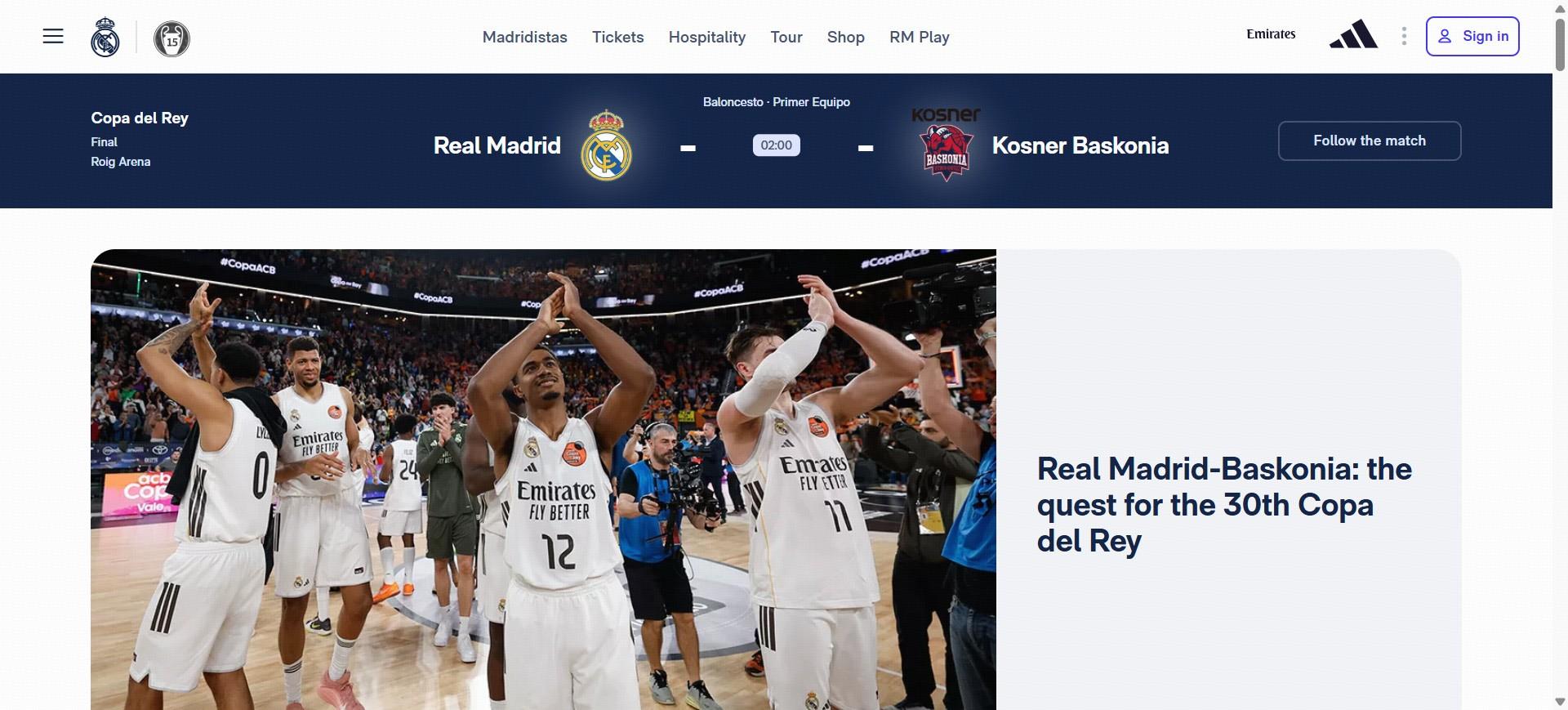 皇馬官網同樣沒有就此事進行更新,最新一條資訊是關於皇馬籃球隊參加國王杯決賽的內容。
