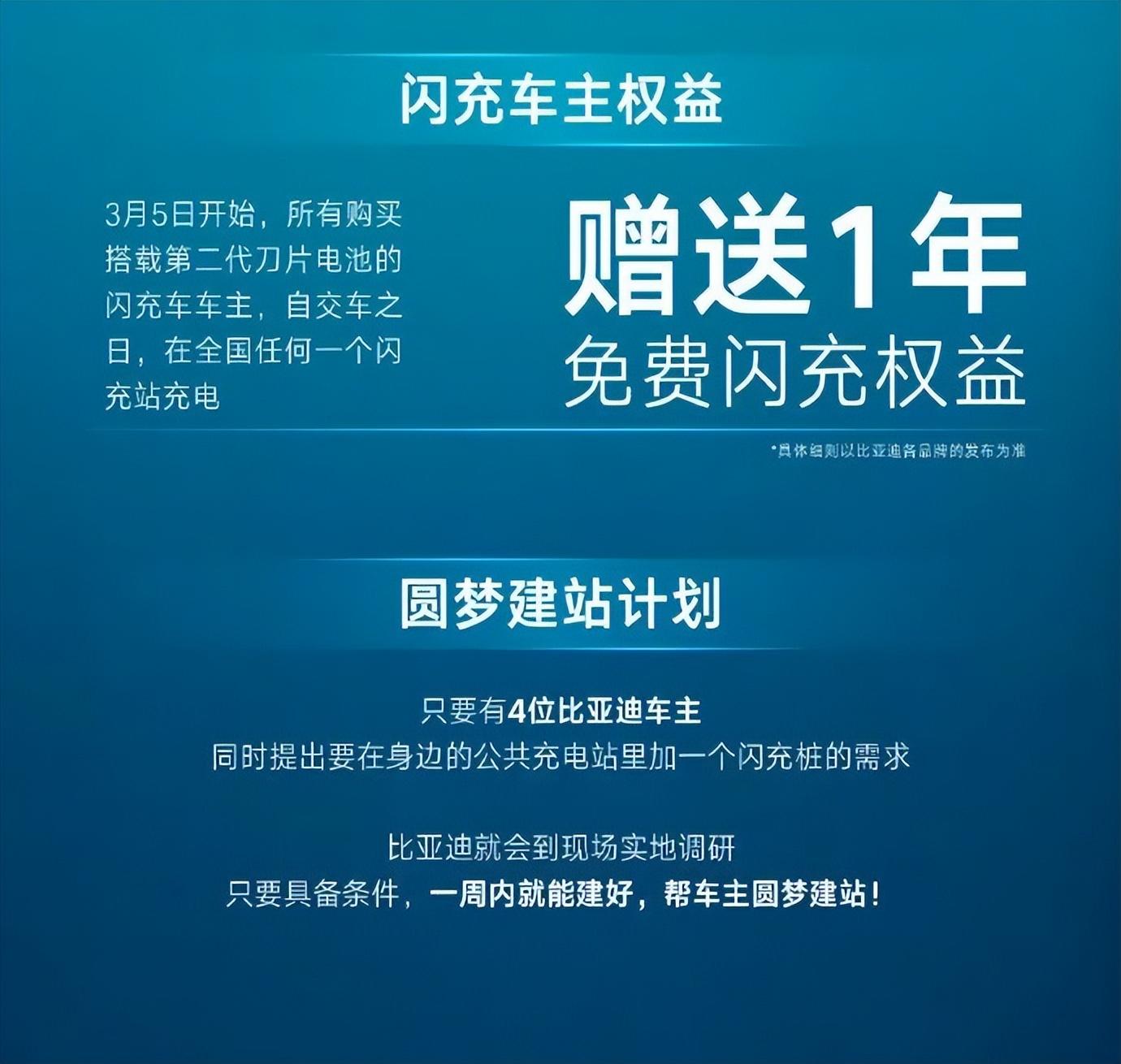 所有購買第二代刀片電池的閃充車主,從交車日開始算,送一年的免費閃充;