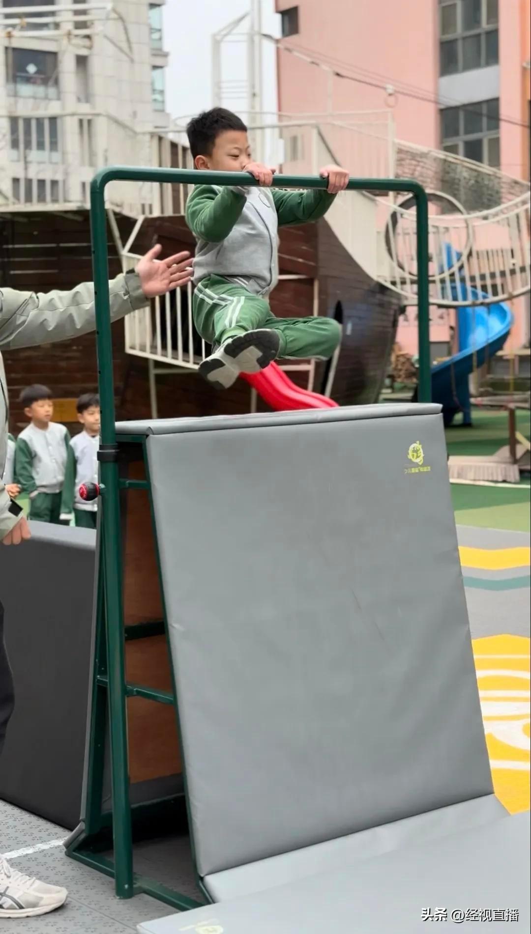 近日,山東濰坊一家幼兒園的“硬核”體能課視頻在網絡上迅速走紅。視頻中,幼兒園操場變成“練兵場”,大班孩子們列隊完成吊槓前進、跳馬、翻越障礙等項目,動作行雲流水,引發網友紛紛點贊,直呼“這纔是幼兒園該有的樣子”,並建議“在全國推廣”。3月6日,經視直播記者聯繫上濰坊博苑實驗幼兒園袁園長。她介紹,視頻中的跳馬、障礙吊槓等動作只是體能教學的一部分,平衡車、輪滑、游泳、足球等也是學校的體育特色項目。