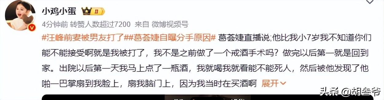 汪峯前妻葛薈婕在直播裏親口說出自己被小7歲男友當衆施暴的經歷,還官宣了和對方的分手消息。
