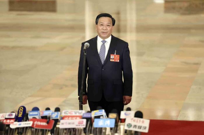 農業農村部部長韓俊接受媒體採訪。