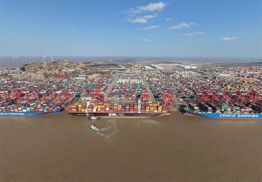2025年12月,無人機拍攝的上海洋山港一二期碼頭。 新華社 資料圖