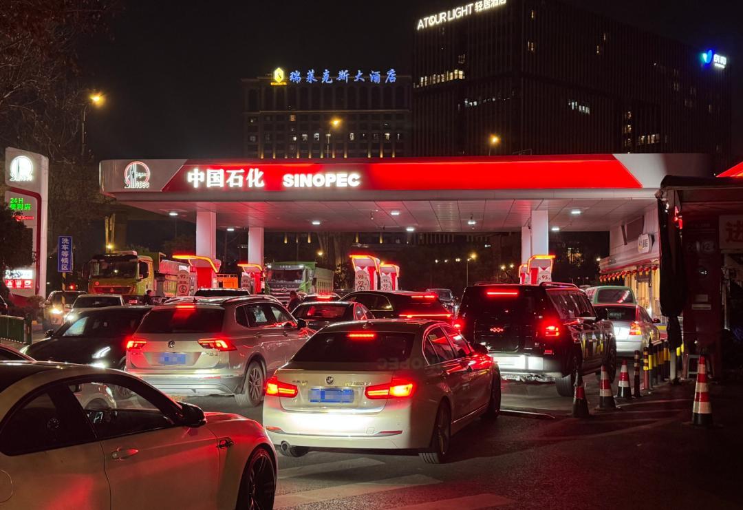家住城北的蔣先生說,他是喫完晚飯跑出來加油的,去的時候是從石祥路的口子進入的,基本沒什麼排隊,等加完油從東新路的口子出來時,發現已經排起了長隊。