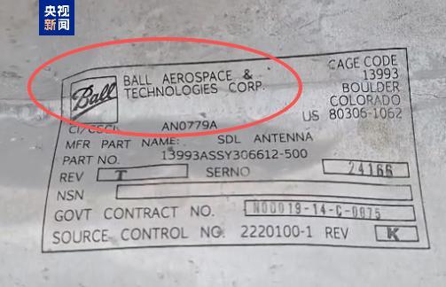△導彈殘片上標有美企“Ball公司”