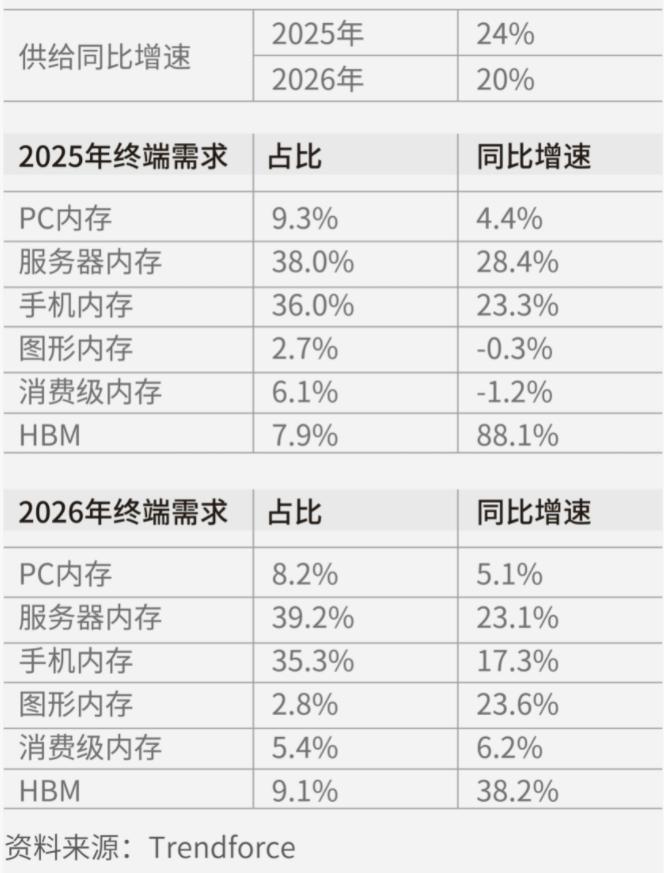 HBM(高帶寬存儲)、DRAM(動態隨機存取存儲),甚至性能等級相對較低的固態硬盤(SSD)、機械硬盤也有需求。