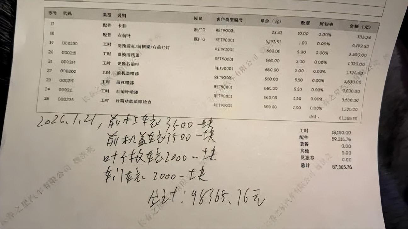 此次事故導致呂先生車輛損毀嚴重,4S店維修清單顯示維修費用共計9.8萬餘元。呂先生表示,因無交通事故認定書,保險公司無法啓動理賠程序,車輛至今無法正常使用,呂先生還找機構對車輛折舊損失進行評估,兩項損失合計近16萬元,全部需自行承擔,讓他十分無奈。