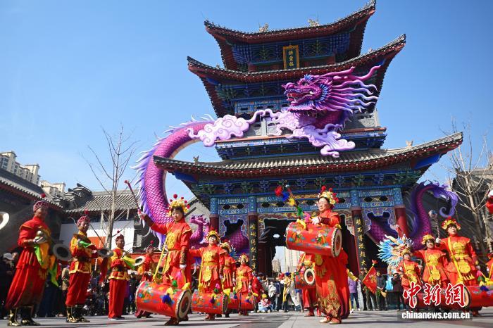 3月20日,在位於甘肅省蘭州市的蘭州老街,祥龍獻瑞民俗活動進行中。當日是中國農曆馬年二月初二,蘭州老街舉行了祥龍獻瑞、彩龍翻飛、龍躍老街等二月二傳統民俗活動,以祈願鴻運抬頭、風調雨順。中新社記者 李亞龍 攝