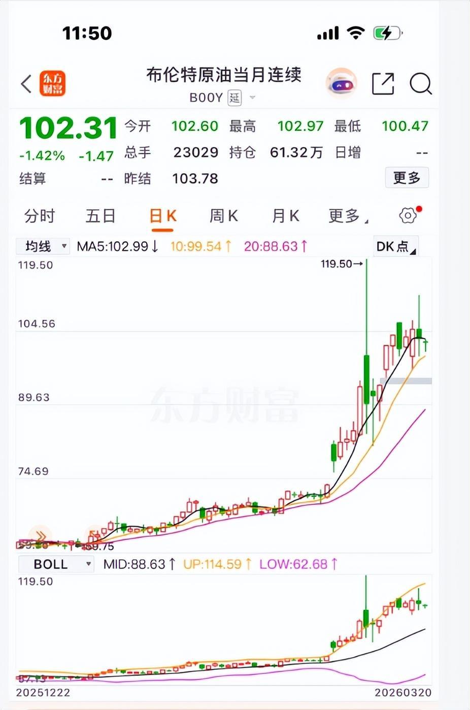 布倫特原油期貨走勢