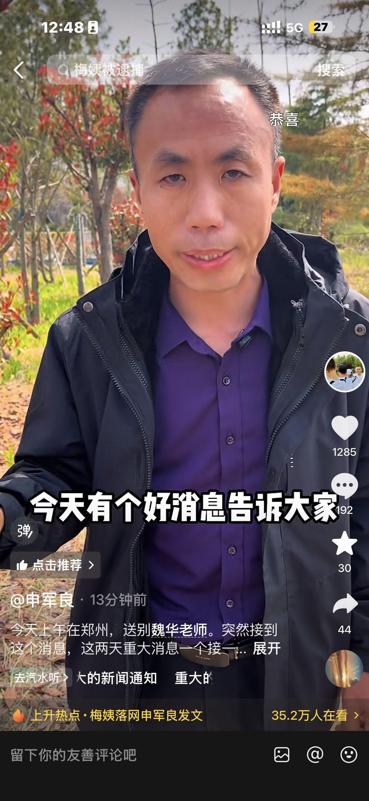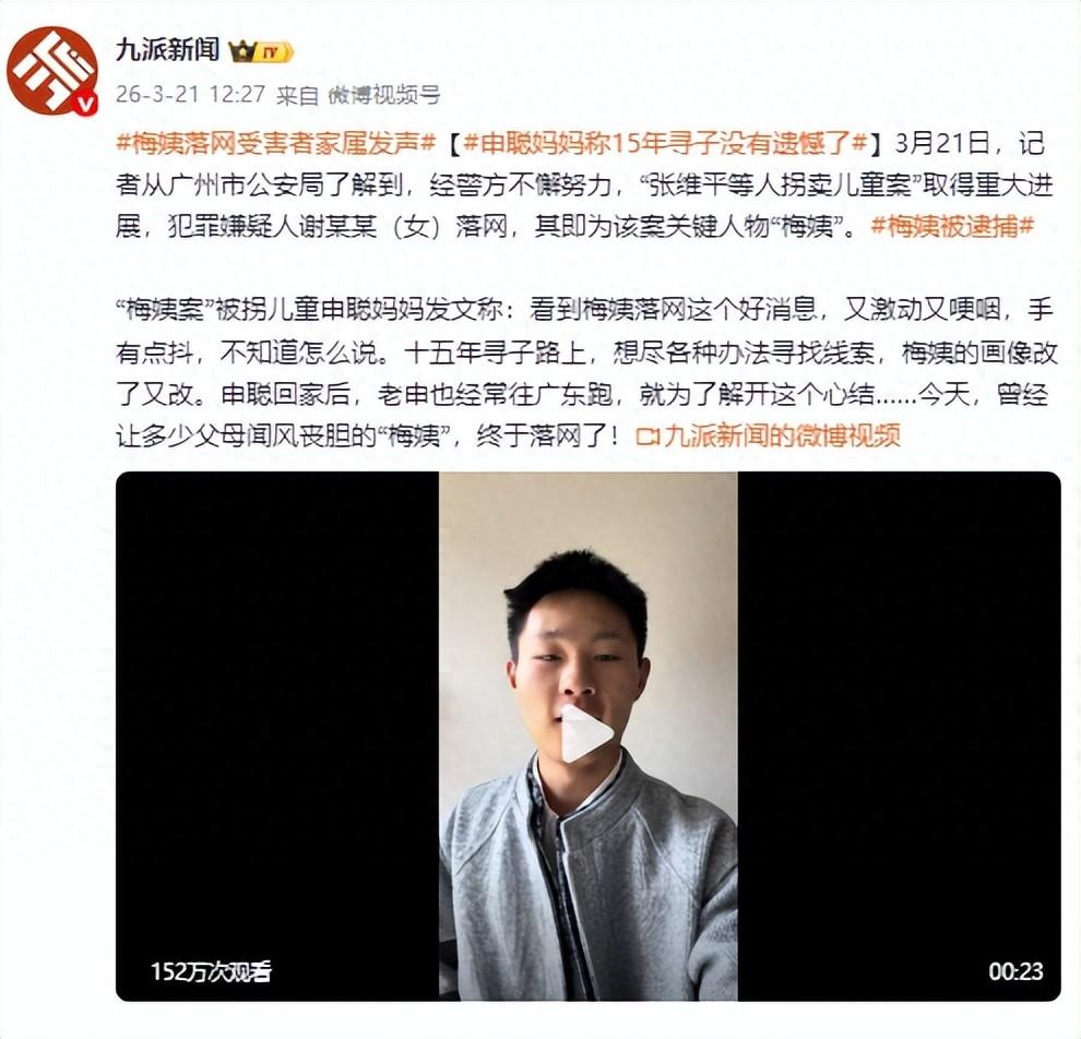 他稱,收到“梅姨”落網消息後感到激動和開心,“我知道遲早有一天她會落網的!”