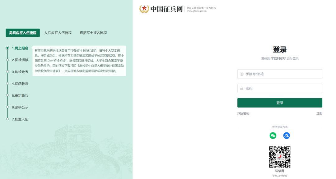 2. 6至7月份,國防部徵兵辦公室根據部隊招收需求,結合網上預報名情況,下達各省(自治區、直轄市)招收任務。應徵青年可查詢所學專業是否符合2026年省級招收軍士專業範圍。(招收專業查詢網址: