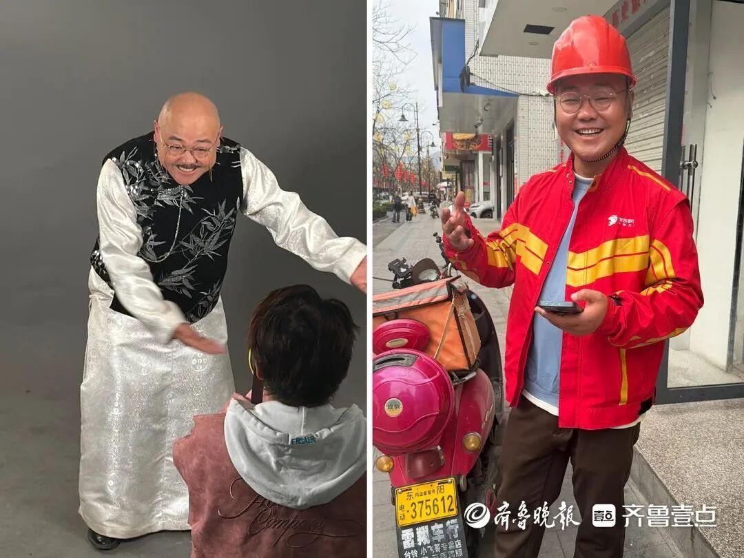 記者騎着電動車緊隨其後,他穿梭得遊刃有餘,遞過餐盒時那句“您的外賣到了”說得又穩又親切,和幾個小時前定妝時皮笑肉不笑的反派角色判若兩人。