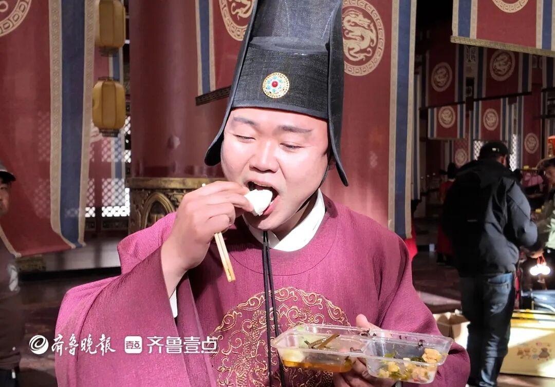 3月15日20點57分,在古裝短劇拍攝現場的角落裏,穿着太監戲服的冀星軍正扒拉着已經涼了的盒飯。