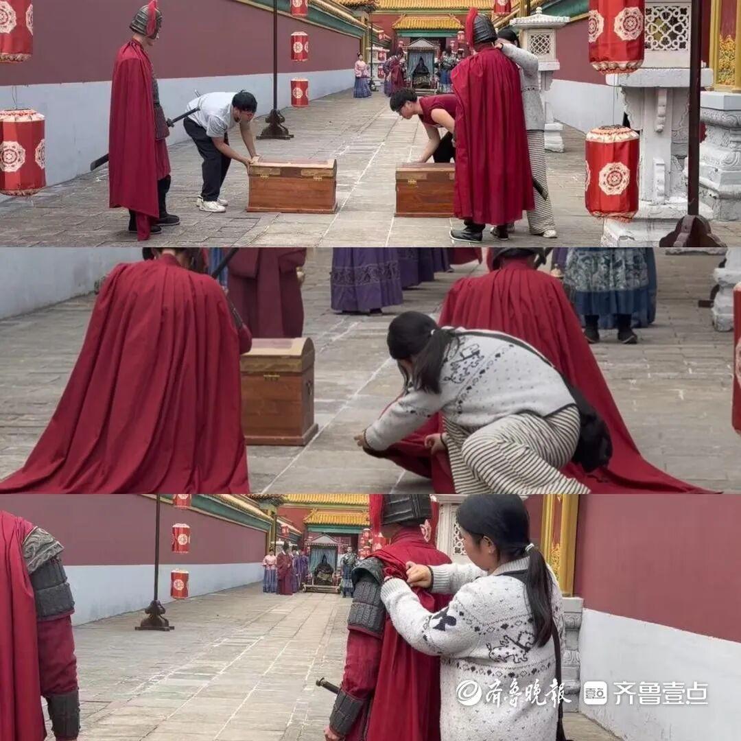 3月16日中午,外景片場。冀星軍穿着厚底官靴,靴子裏墊了軟墊——否則站久了,腳會不聽使喚地打哆嗦。他的戲份不多,卻要全程配合“皇上”的每一句臺詞,用細微的表情和動作配合表演。