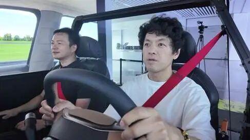 竹內亮(右)在浙江吉利體驗虛擬AI車身控制技術。