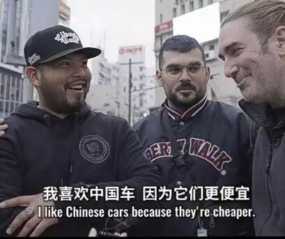 紀錄片中,在東京街頭隨機採訪的歐美人,對中國汽車的評價跟日本人相反。