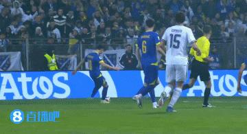 第90+1分鐘,波黑右路傳中到小禁區前,有球員倒在禁區內,主裁判沒有表示↓