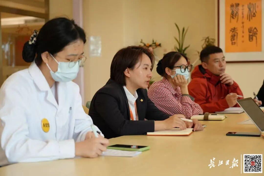 孔小藝(左二)正在多方會診動態調整護理方案。通訊員供圖