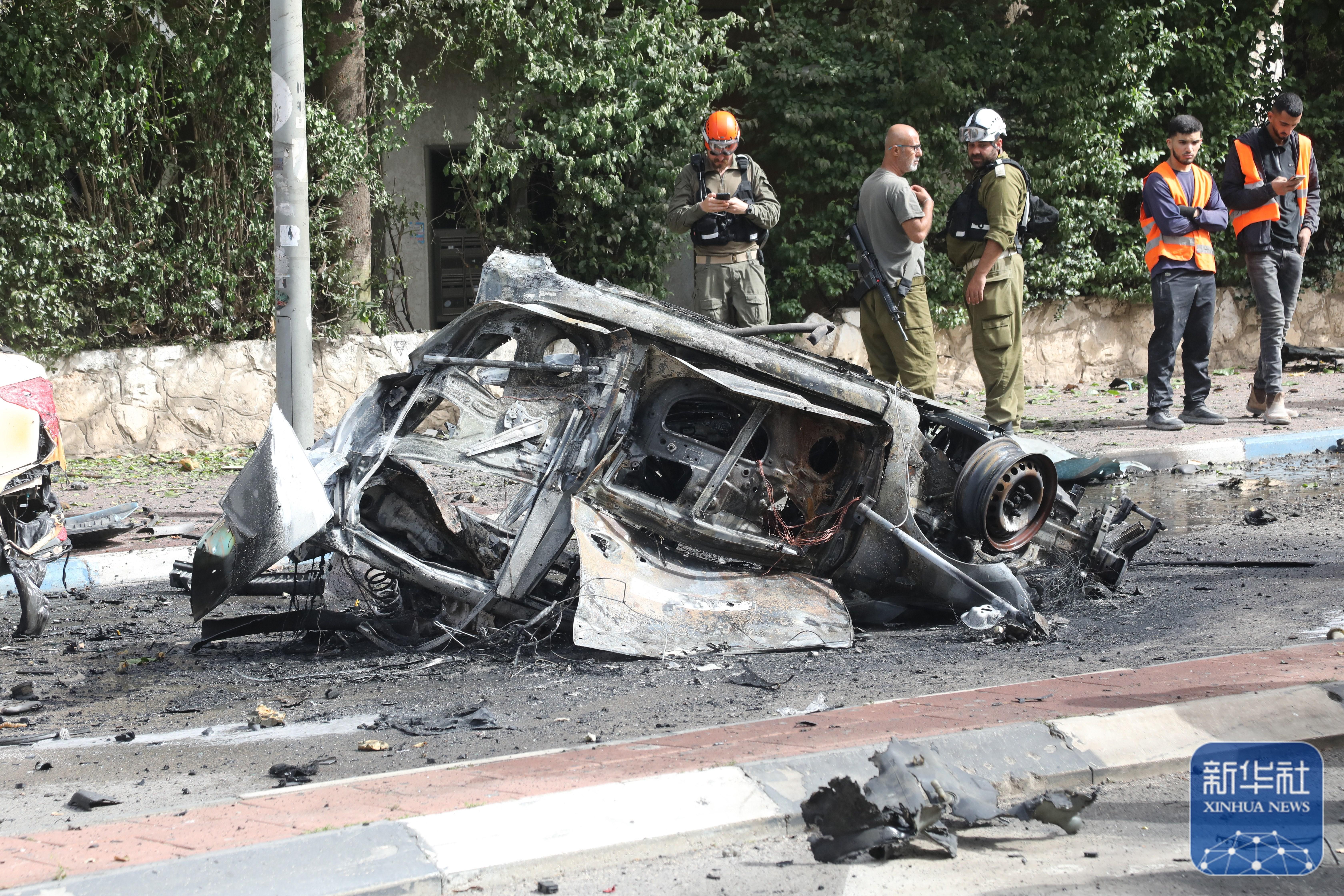 ↑這是4月4日在以色列中部城市拉馬特甘拍攝的一處導彈襲擊現場。新華社發(吉德翁·馬科維奇攝/基尼圖片社)