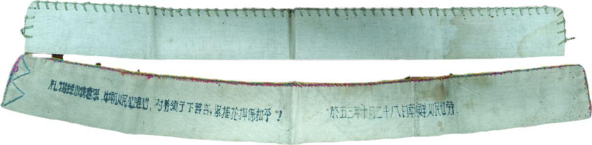 藏品中,兩條衣領引起大家的注意。記者看到,其中一條工工整整地寫着一行繁體字。陳藻燦回憶,當年朝鮮百姓的家園遭敵機狂轟濫炸成了一片廢墟,是志願軍戰士敞開防空洞,爲流離失所的人們遮風擋雨、庇護安危。