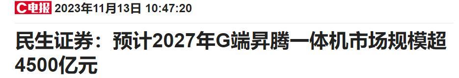 升騰已串起千億級產業鏈,研究機構預計 2027 年升騰一體機市場規模超 4500 億元。