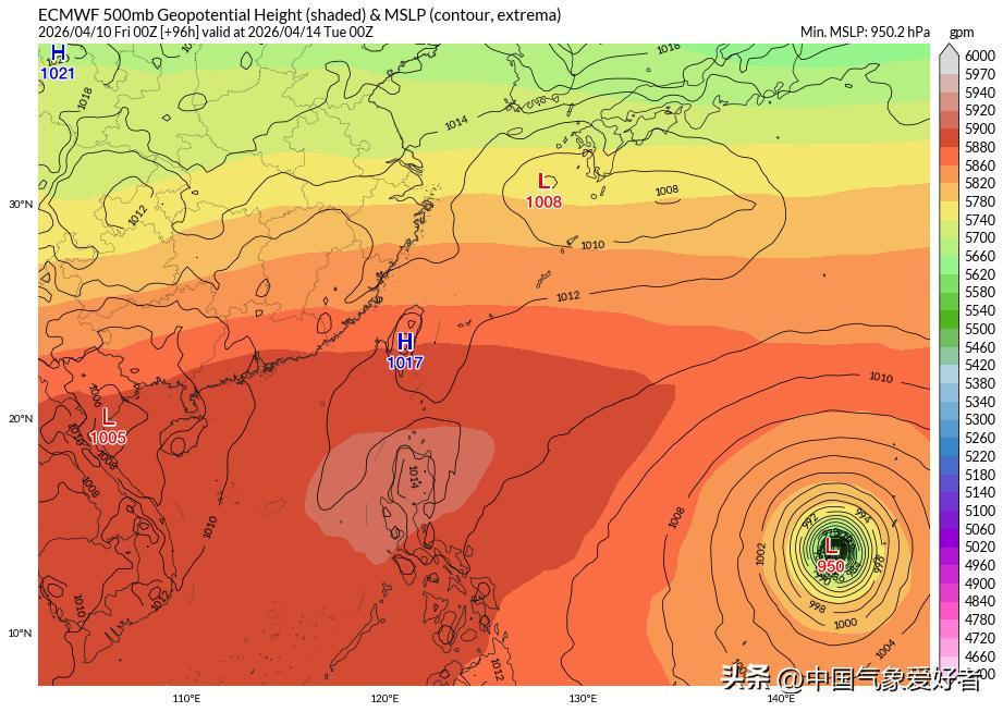 與此同時,颱風森拉克的結構在4月10日顯得異常緊湊,其核心區被厚實的螺旋雲帶嚴密包裹,呈現出完美的中心密集雲區特徵。這種緊湊型颱風往往比大型鬆散颱風更具爆發力,能量更加集中。深冷雲頂的存在不僅是強度的標誌,更是其未來路徑引導力量的風向標。隨着高層流出的建立,森拉克正在建立屬於自己的動力機制,這種不依賴於大規模天氣系統的獨立生存能力,正是其可能在4月中旬挑戰年度風王寶座的關鍵邏輯。