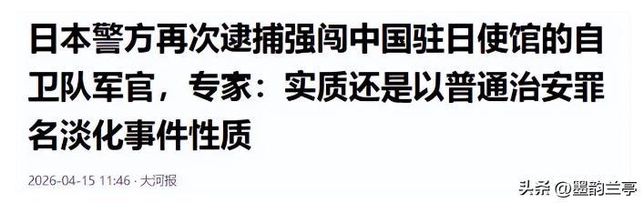 那個帶刀闖中國駐日使館的自衛隊軍官,直接從軍營被關進了看守所。