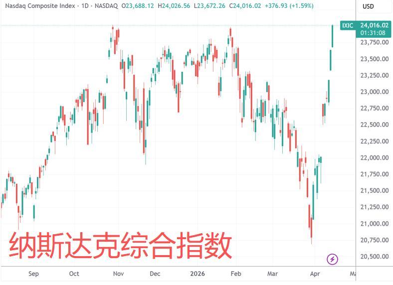 統計數據顯示,納指在3月30日跌入“超賣”區間後,於週三進入“超買”區間,期間僅經歷11個連續上漲的交易日。這也是上世紀80年代有數據以來的最快逆轉。自3月30日以來,納指累計漲幅超過15%。