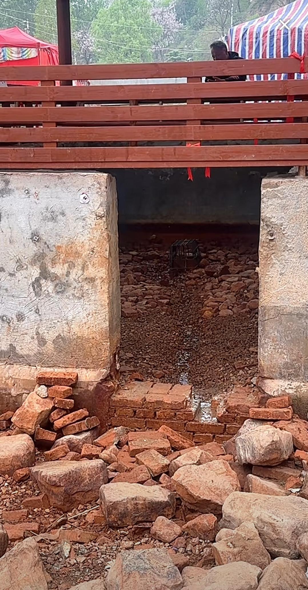多名網友拍攝的視頻顯示,在鄭州市二七區馬寨鎮梨園河村的賈魯河源頭,一眼河邊機井周圍堆砌了圍牆,只留出一道門供泉水流出,湧入附近的河道,機井口上方建了涼亭,供遊客和村民觀賞泉水,機井口則加蓋了防護罩。記者注意到,機井口的泉水已斷流。