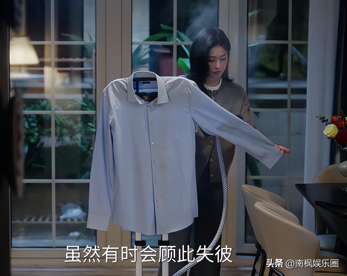 依舊是精緻的大波浪和精緻完妝,就像是擺拍一般,僅僅熨了熨這麼一件襯衫,沒有任何生活氣息。