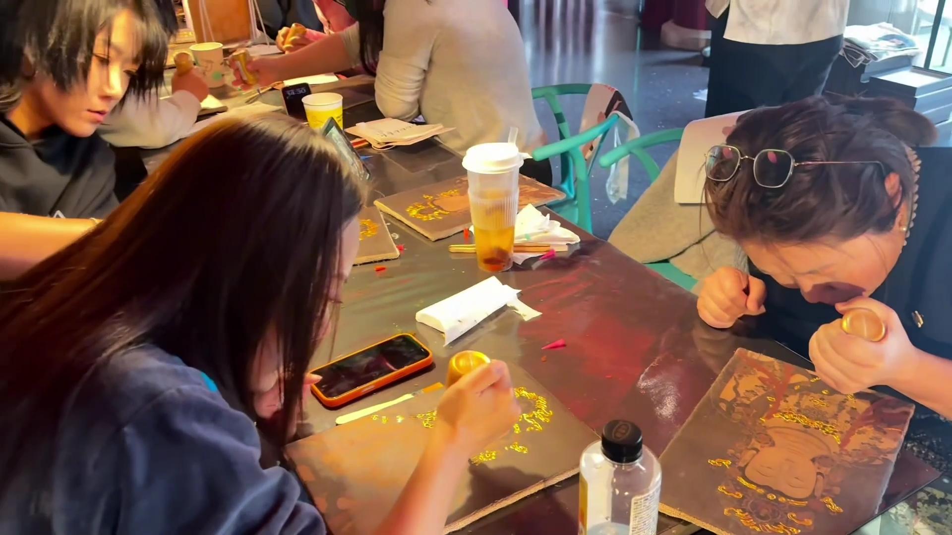 記者走進位於山西省太原市一家核心商圈的手工店,店內人氣十足,顧客圍坐桌前體驗陶藝、造景貼紙、拼豆等手工項目,各類手工體驗正悄然“破圈”。