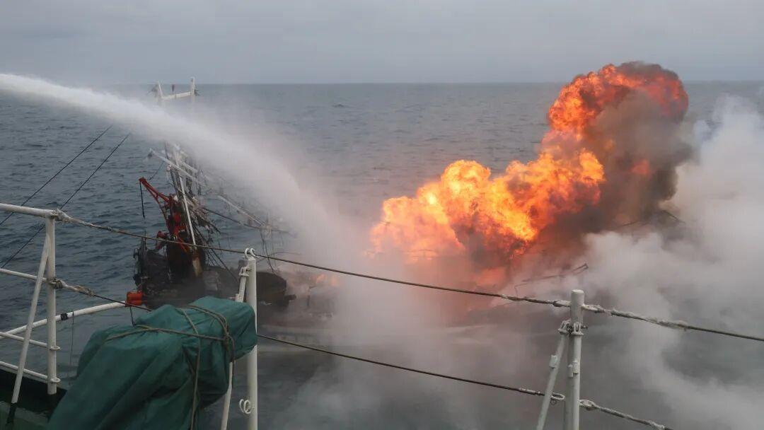 △海警艦艇對失火漁船進行滅火