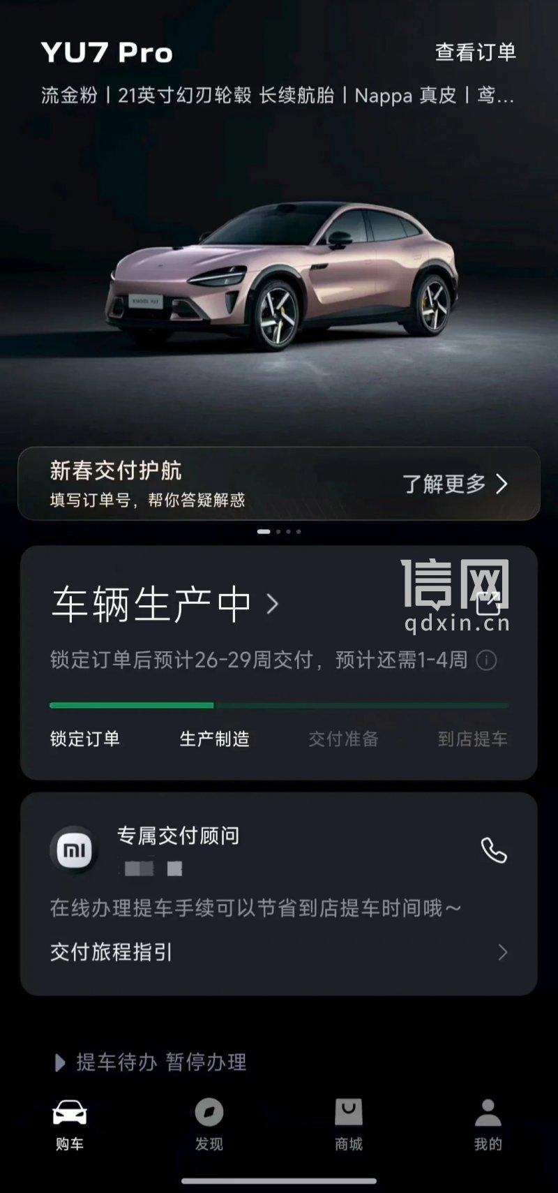 2025年6月26日,譚女士“卡點”訂了一輛小米YU7 Pro:通道開啓後18秒付了5000元定金,3分鐘內選完了配置和顏色,訂車時App裏顯示預計27~30周交付。