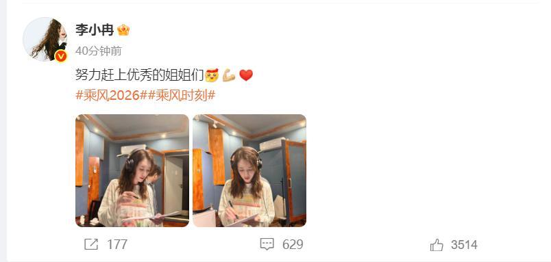 4月17日播出的《乘風2026》節目中,李小冉回應《心願便利貼》一公個人乘風值第一名,她哽咽稱:“我們的起跑線就是很低,我希望我們以後的舞臺是可以向唱功好、跳得好的姐姐們看齊”,還表示可以承受更多的東西。
