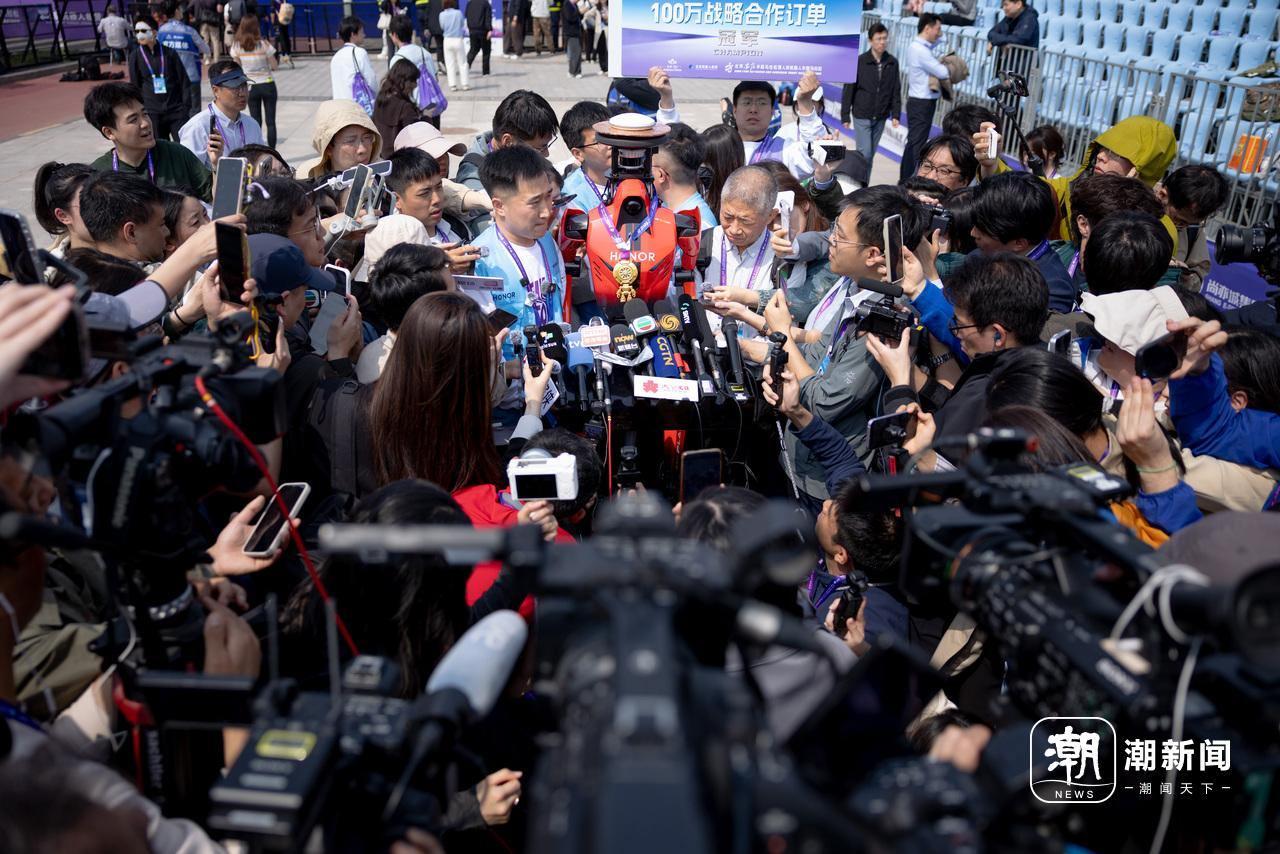 奪冠後的榮耀自研人形機器人“閃電”備受中外媒體矚目。潮新聞記者 倪雁強 攝