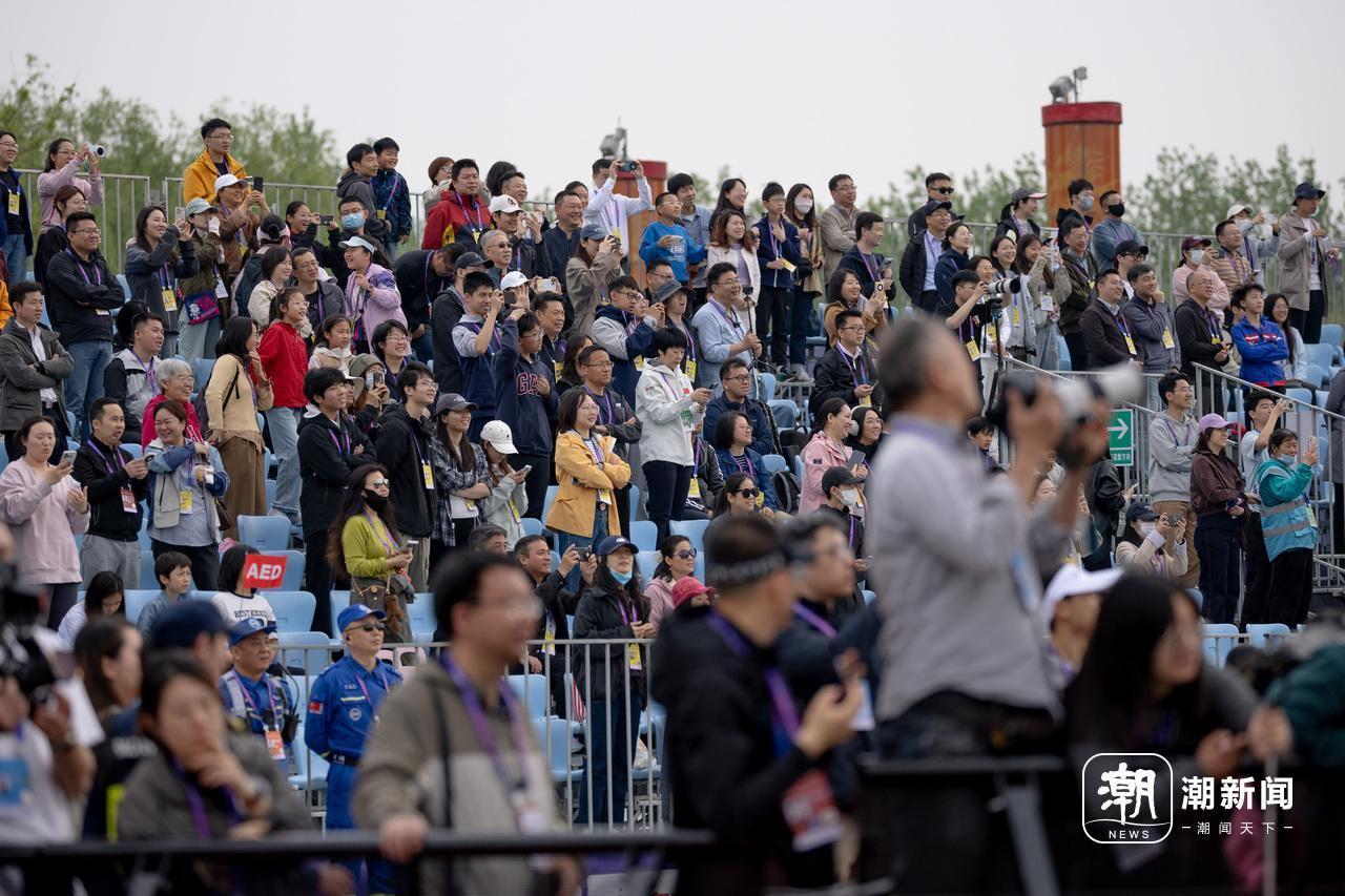 終點線旁的看臺上,觀衆翹首以待第一個衝線的機器人選手。潮新聞記者 倪雁強 攝